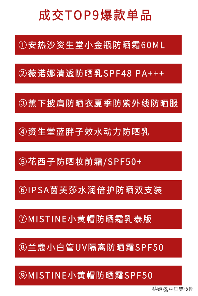 值得一提的是,功護膚領(lǐng)軍品牌薇諾娜也瞄準了防曬賽道,憑借對于敏感肌防曬問題專業(yè)解決站穩(wěn)市場。旗下清透防曬乳在爆款單品榜單中排名第二位,繼續(xù)釋放“國貨之光”的無限潛力。