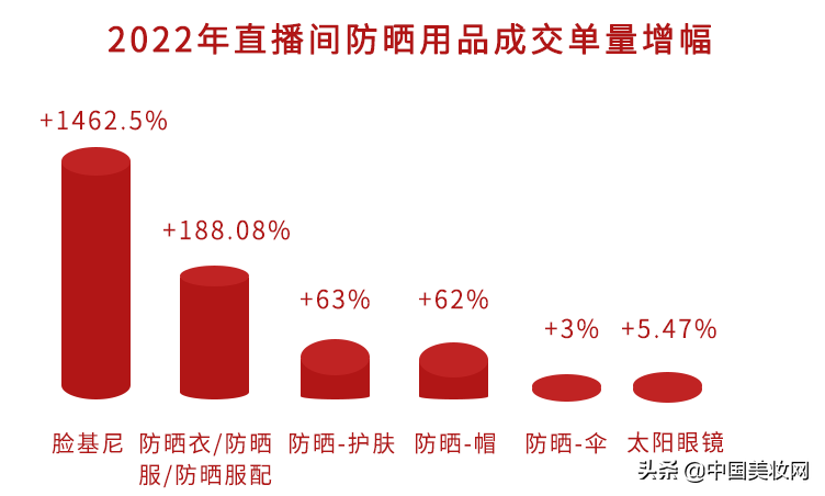 以傳統(tǒng)防曬霜為代表的化學(xué)防曬已不能滿足消費者精致主義的訴求,面對紫外線的無死角攻擊,消費者毫不猶豫地選擇包裹式的“物理防曬大法”進行抵御。報告顯示,2022年1-4月,防曬用品在直播間的成交額增速達40%,其中防曬衣成交增幅達157.11%,防曬護膚成交增速達62.17%。