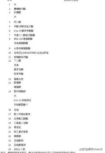他長(zhǎng)圖片上的樣子,大家注意看。成分表附上。