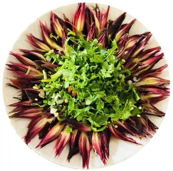介紹一個比較有特色的菜,元藿,植物學名:蘘荷[ráng hé],是一種姜科多年生草本植物。從它的地下莖發(fā)出的露出地表的花蕾可以食用,也稱之為“蘘荷”,是一種香辛蔬菜。居住在湖北、四川等省的山區(qū)居民稱之為:[yuán huó]元藿。