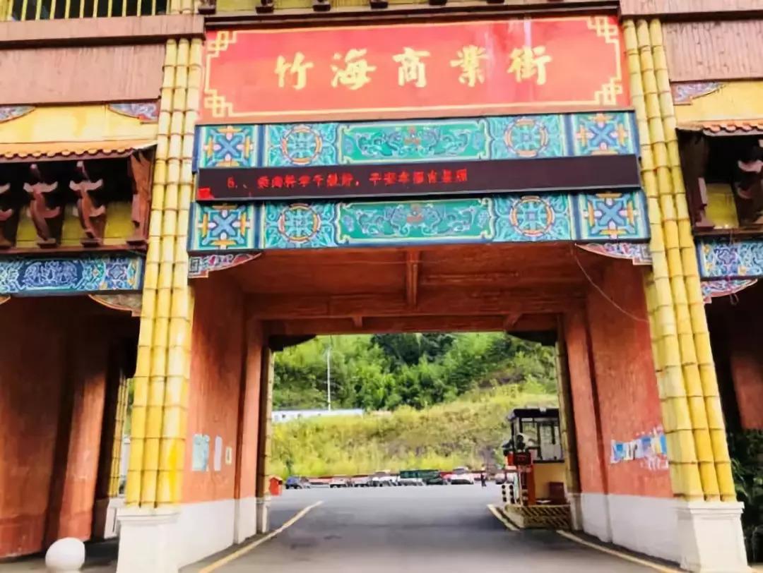 竹海商業(yè)街,買票是在面向這個大門的左邊。前面提到的美食都可以在這條街上找到。