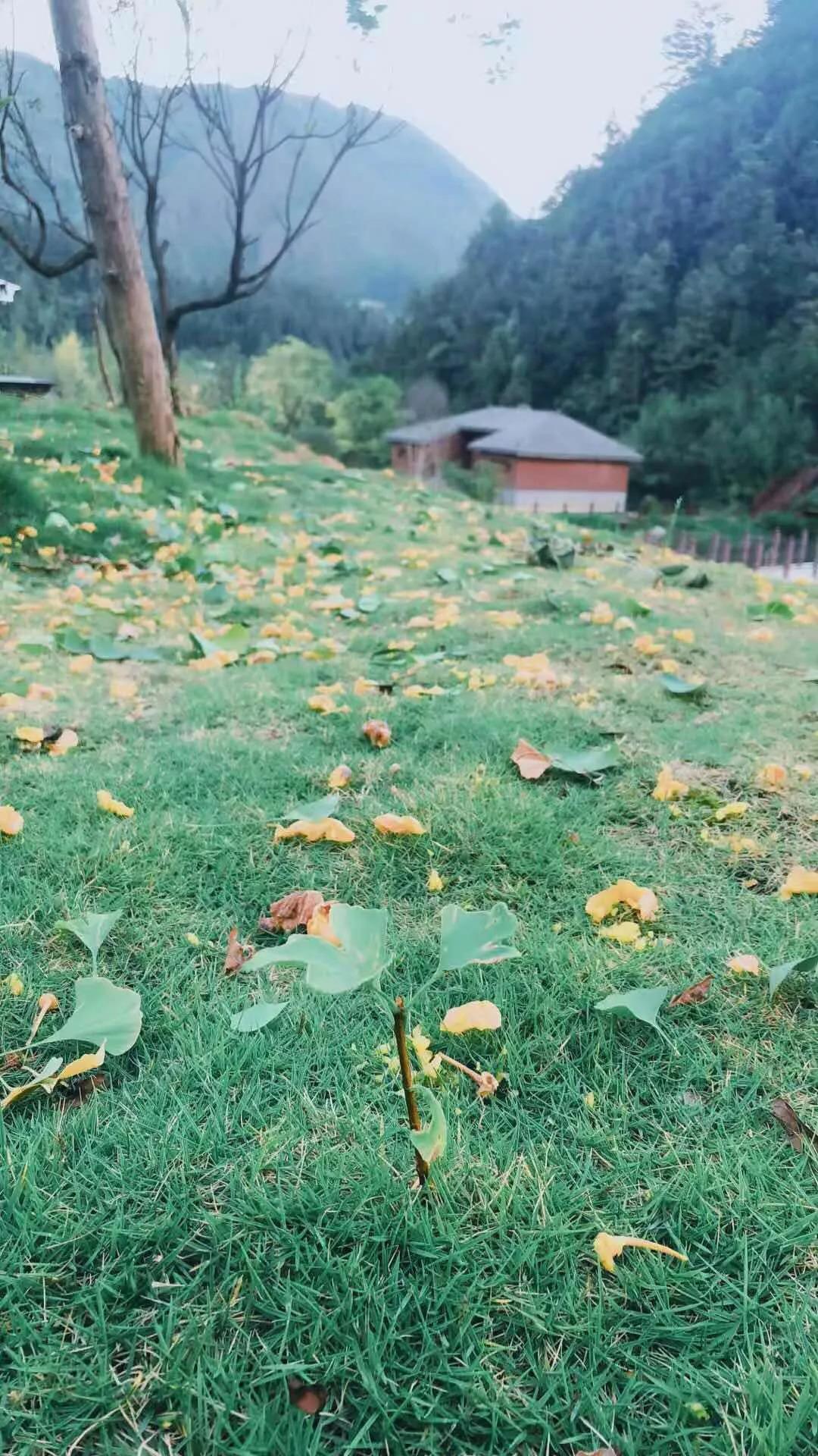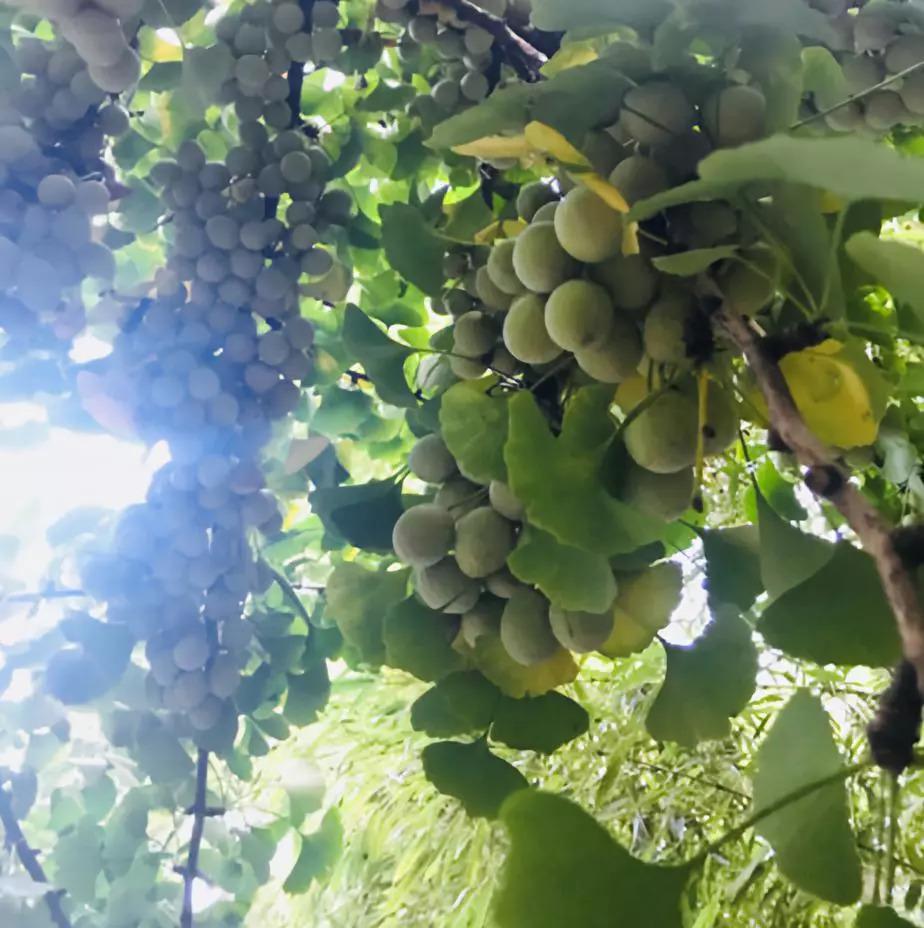 正值秋收的季節(jié),樹上的白果快把銀杏樹壓彎了腰