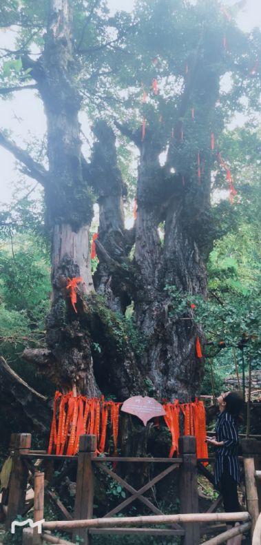 樹王,樹齡1500年,樹高10米,冠幅5x7米,胸徑220厘米,它是景區(qū)內(nèi)樹齡長,胸徑大,象征長壽吉祥之樹。
