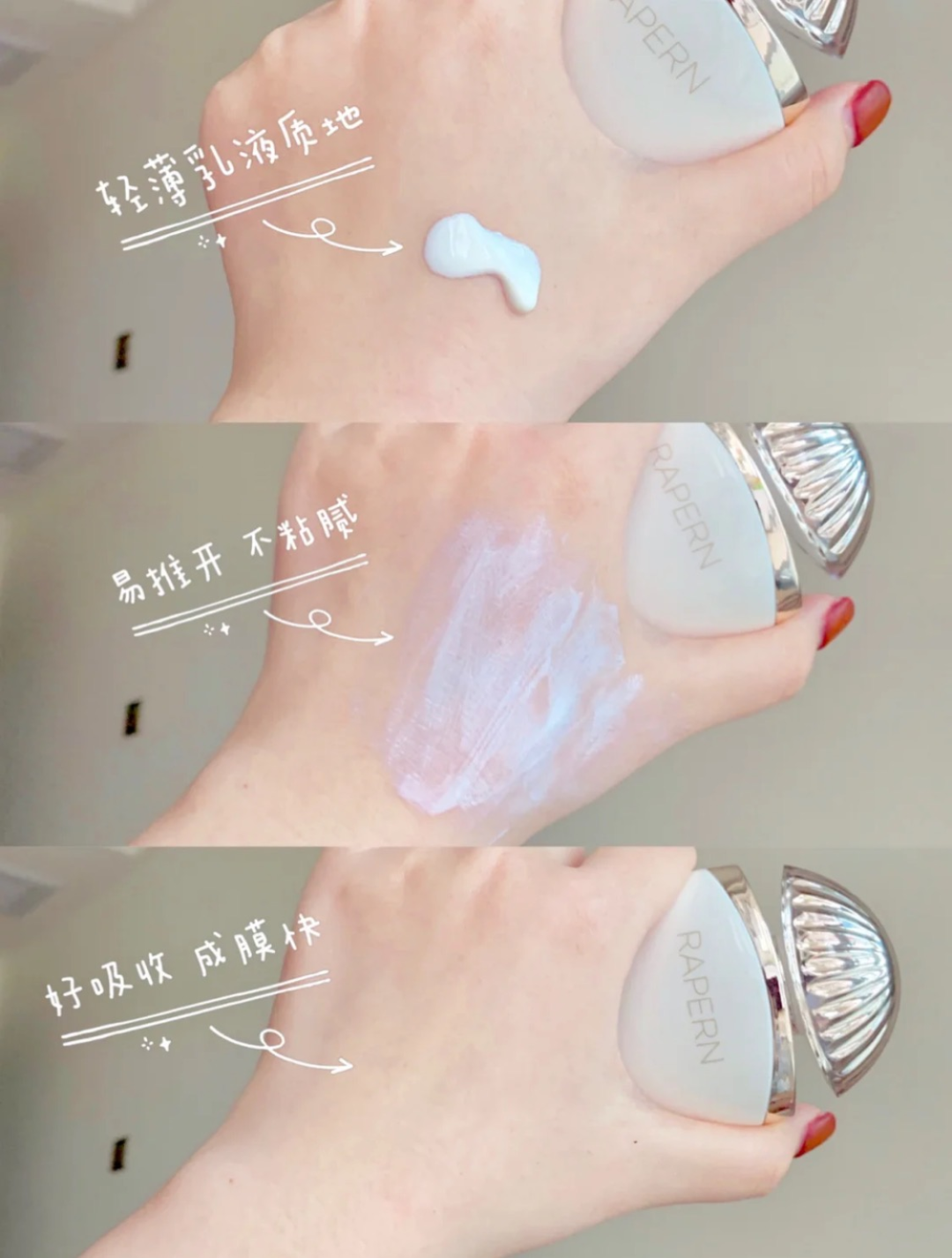 涂開后迅速成膜,皮膚沒有黏膩感,有種輕薄透氣的感覺。