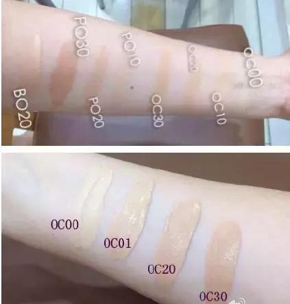 多色號試色圖如下。我用的是BO00,藍(lán)調(diào)的白色,質(zhì)感天然高級,推薦給膚白但有點(diǎn)雀斑的姑娘▼