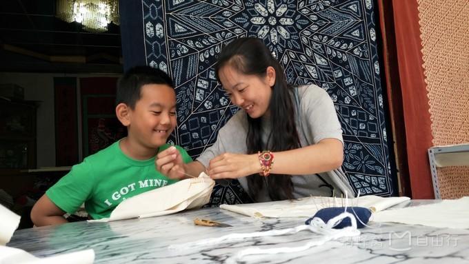 扎染是白族人明末清初以來(lái)的民間傳統(tǒng)工藝,傳承至今,在周城(扎染之鄉(xiāng))從10歲小女孩到年逾花甲的奶奶都會(huì)扎染,扎染采用的染料都是植物煉成,多為板藍(lán)根。帶上孩子,讓白族阿婆一針一線教會(huì)孩子這民族的手藝。