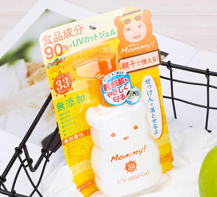 @我是哲小哲哦:這款kissme旗下的mommy防曬霜性價比極高,一瓶有100g,就算涂多了也不會心疼。在日本各大藥妝店超市均是熱銷產(chǎn)品。并且性極高,mommy系列產(chǎn)品的特色便是高性和天然性,90%的天然食品成分為原料,無色素、香料、防腐劑、酒精、礦物油等添加劑。適用任何膚質(zhì),90%的天然食品成分對特殊肌膚多了一份保障,即便是新生兒和孕婦同樣能使用。無需卸妝,只需用香皂(如和光堂香皂、洗面奶、沐浴露(如貝親沐浴露)等清洗即可。我和我家寶貝一起用的這一款,便宜且好用。涂抹在臉上不油膩,很容易吸收,防曬果好,值得擁有。