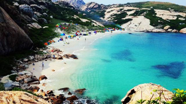 其它:有樹蔭,可扎30-40頂帳篷。三門島附近漁民較多,捕撈也多。三門島靠近大海,海浪比較大,下水要注意。