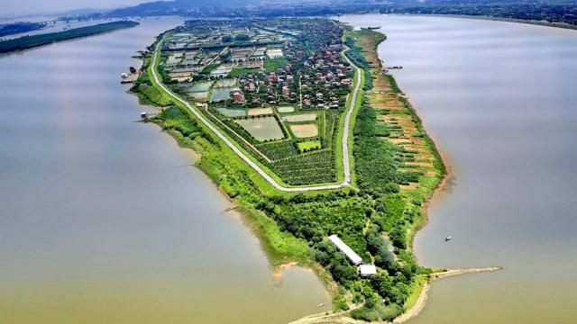 整個(gè)海壽島的面積約2.8平方公里,島上靠一條長約6公里的環(huán)島河提河水分離,河堤還起環(huán)島公路的作用,可供汽車行駛。