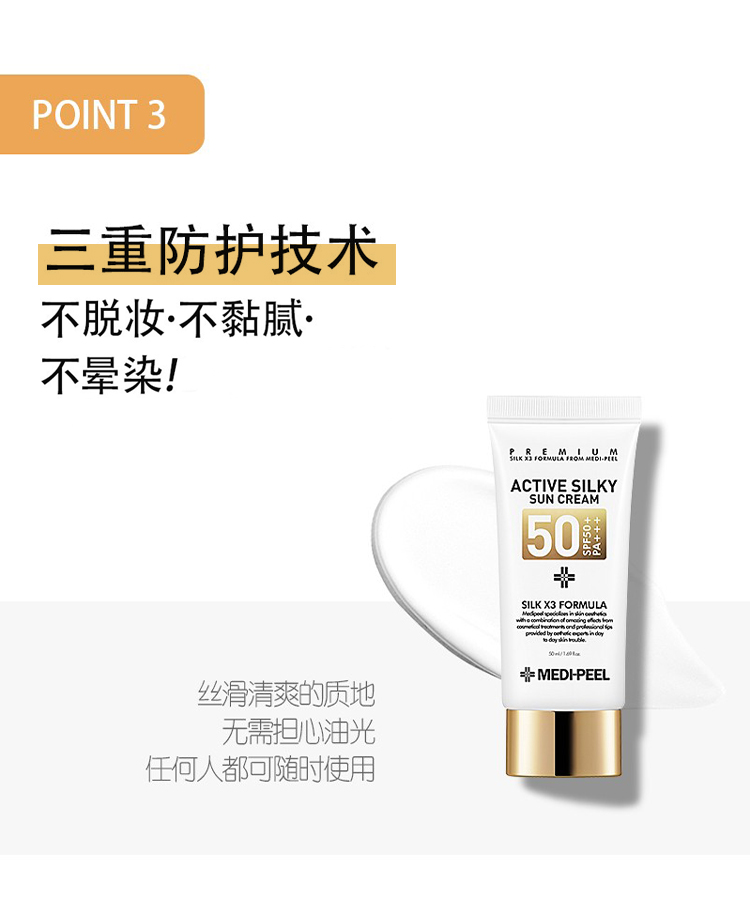 添加3重蠶絲成分,防曬、隔離、養(yǎng)膚三不誤