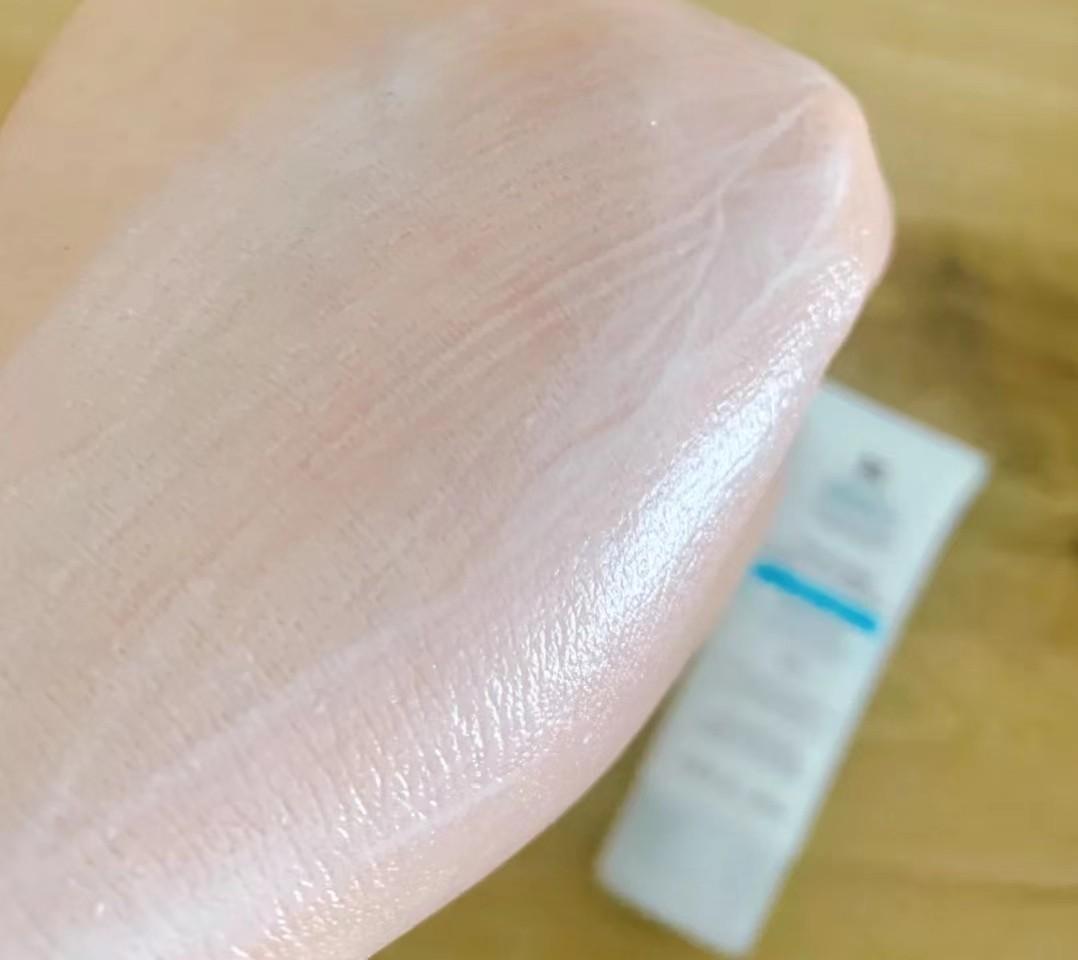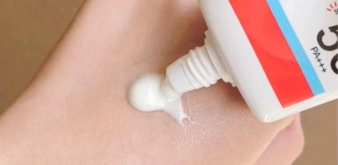 這款防曬霜是薄的乳液質(zhì)地,其中用到的冰感控油技術在接觸到皮膚時,能夠有冰冰涼涼的涂抹膚感。