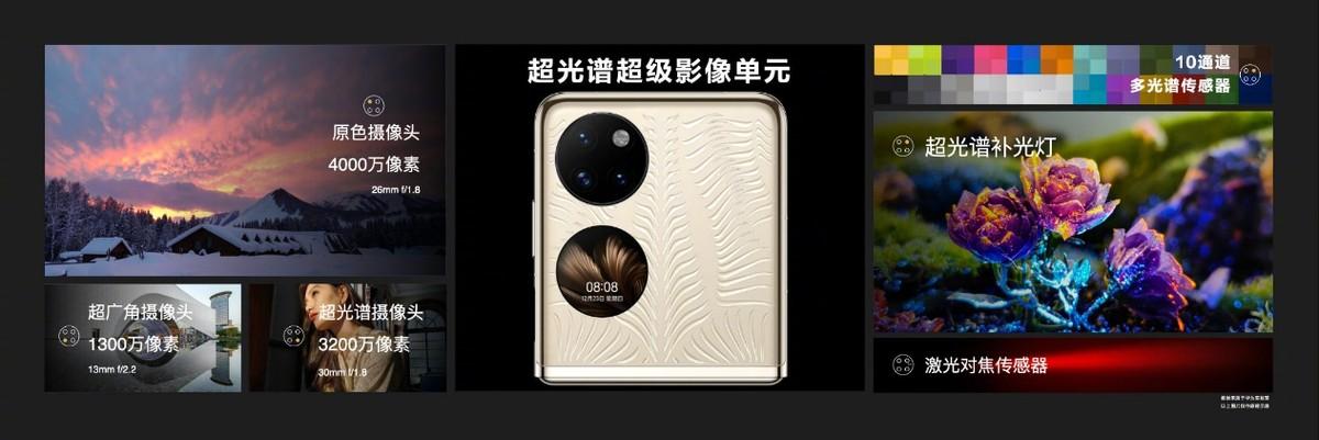 圓形屏幕的旁邊就是華為P50 Pocket的超光譜影像單元。這里面包含10通道多光譜傳感器、超光譜補光燈、激光對焦傳感器、4000萬像素原色攝像頭,1300萬像素超廣角攝像頭和3200萬像素超光譜攝像頭。而華為P50 Pocket可以讓你實現(xiàn)后置高清主攝自拍,達到華為強自拍果,以及拍攝出超夢幻的熒光攝影照片。