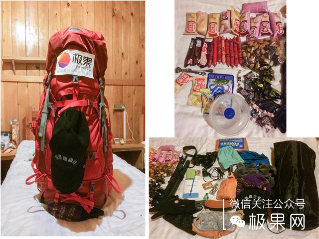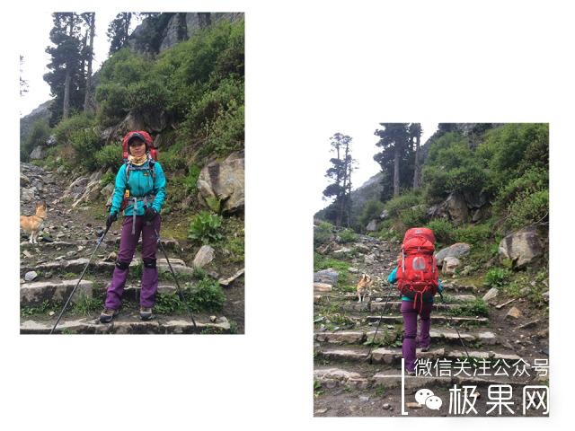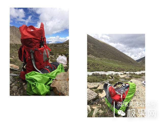 由于天氣變化,需要隨時根據(jù)天氣增減衣物和隨身物品。一開始多云,我出發(fā)時就把防雨罩用在包上。而手機由于隨時需要導(dǎo)航,需要隨時存取,于是就把手機放到腰帶側(cè)包里,側(cè)包防水性能很好,淋雨時手機也沒有受潮。由于天氣不好,從出發(fā)到埡口前天晴之間,我都沒有下包休息,早上出發(fā)時將所穿的衣服調(diào)整好。路上行走時喝水袋里的水方便,需要戴帽子時,讓同伴從頂包里取出也方便。