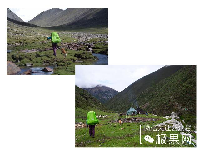 第一天從派鎮(zhèn)到汗密,我總共走了15小時30分鐘,高到達海拔為4245米,共行進約41公里。從松林口到多雄拉山口,一路有杜鵑花、小瀑布、河流,沒有密林,偶爾需要通過水漫的碎石路,天氣多云,到山口附近,有積雪覆蓋。這段我沒有使用防雨罩,到達拉格時所有物品均干燥,背包自身的防水性能還是很好的。