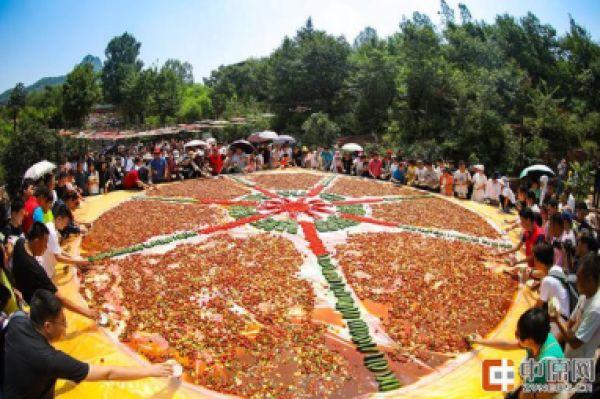 7月14日,新密某景區(qū)門前,擺出一桌“蝦尾宴”,吸引了眾多游客圍觀與嘗鮮,紛紛為這樣的美味而點贊。從現(xiàn)場可以看到,近千斤炒制好的蝦尾、黃瓜和番茄構成了一個巨型的花瓣,放在9米寬的大桌子上,造型十分奇特。眾所周知,新密蝦尾屬于當地特色美食,備受游客歡迎。據現(xiàn)場工作人員介紹,這次共準備了1000斤蝦尾,兩天內有近萬名游客品嘗。