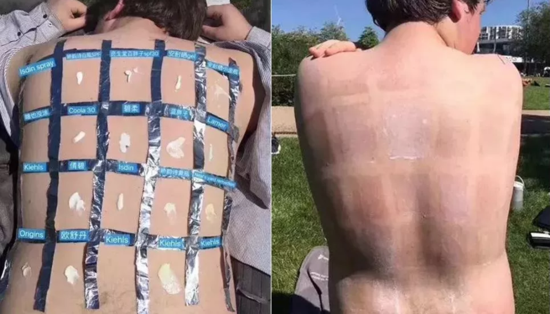 這是一個防曬測試,一開始只是為了測試防曬霜的果。兩小時后,大部分皮膚都有被曬傷的情況。