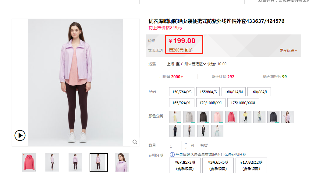 好不容易看上優(yōu)衣庫一件大火的防曬衣,日常售價也要好幾百,即便是大促也要200塊!