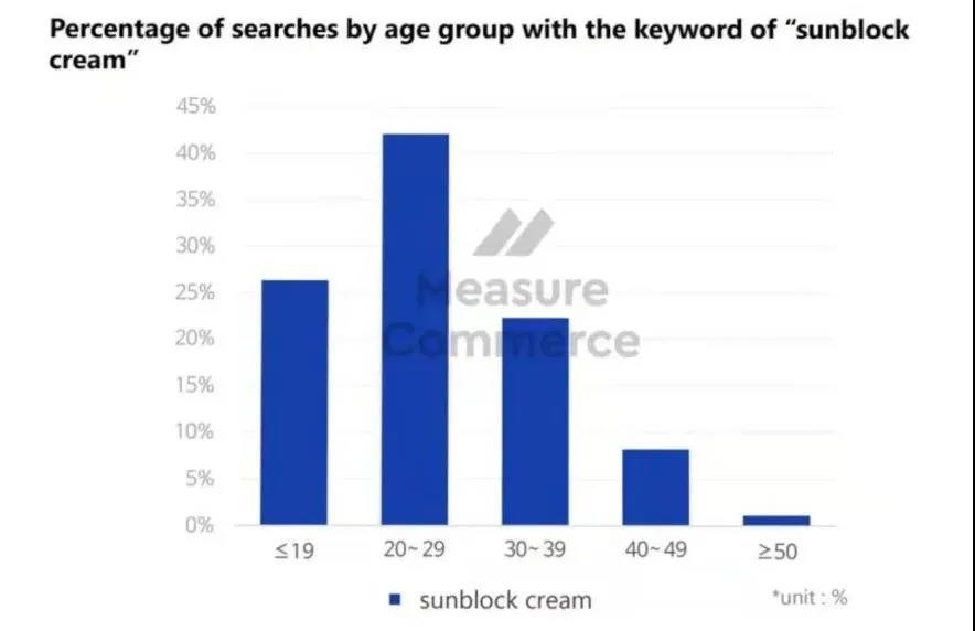MeasureCommerce分析數(shù)據(jù)顯示,在互聯(lián)網(wǎng)上搜索防曬品類相關(guān)內(nèi)容的女性消費者,30歲以下的占到了70%。與2019年同期相比,“女學生”這一產(chǎn)品營銷關(guān)鍵詞的活躍度增長了8%。