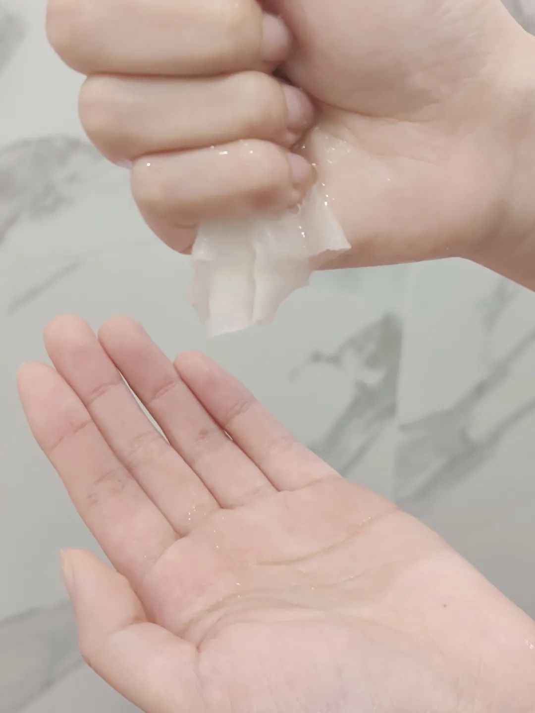 這款面膜上臉的觸感好。拆開包裝就能感受到質(zhì)感,不是普通廉價面膜布不貼合的廉價感,潤百顏白紗布采用了「三層復合技術(shù)膜布」,把起到舒緩作用的積雪草纖維織進了膜布,形成積雪草纖維+白紗布+積雪草纖維的形式,上臉就感受到服服帖帖被安撫的舒適感,而且很透氣。