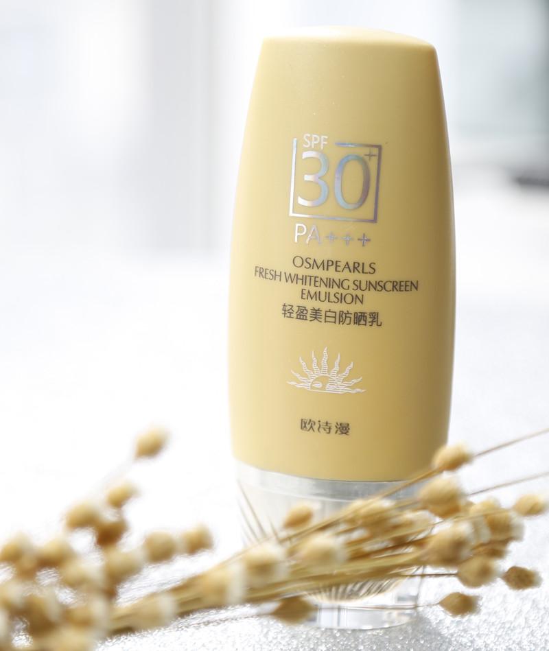 歐詩漫這一款輕盈美白防曬乳,防曬指數(shù)比較強(qiáng),SPF30+ PA+++ PA是指的UVA程度,"+"號越多就越有;SPF則是指的有防曬時(shí)間,SPF30的有防曬時(shí)間為8小時(shí),雖然防曬時(shí)間比較長,但也不能掉以輕心,還是需要不時(shí)地補(bǔ)涂防曬霜的~這才是大限度地對自己負(fù)責(zé)~