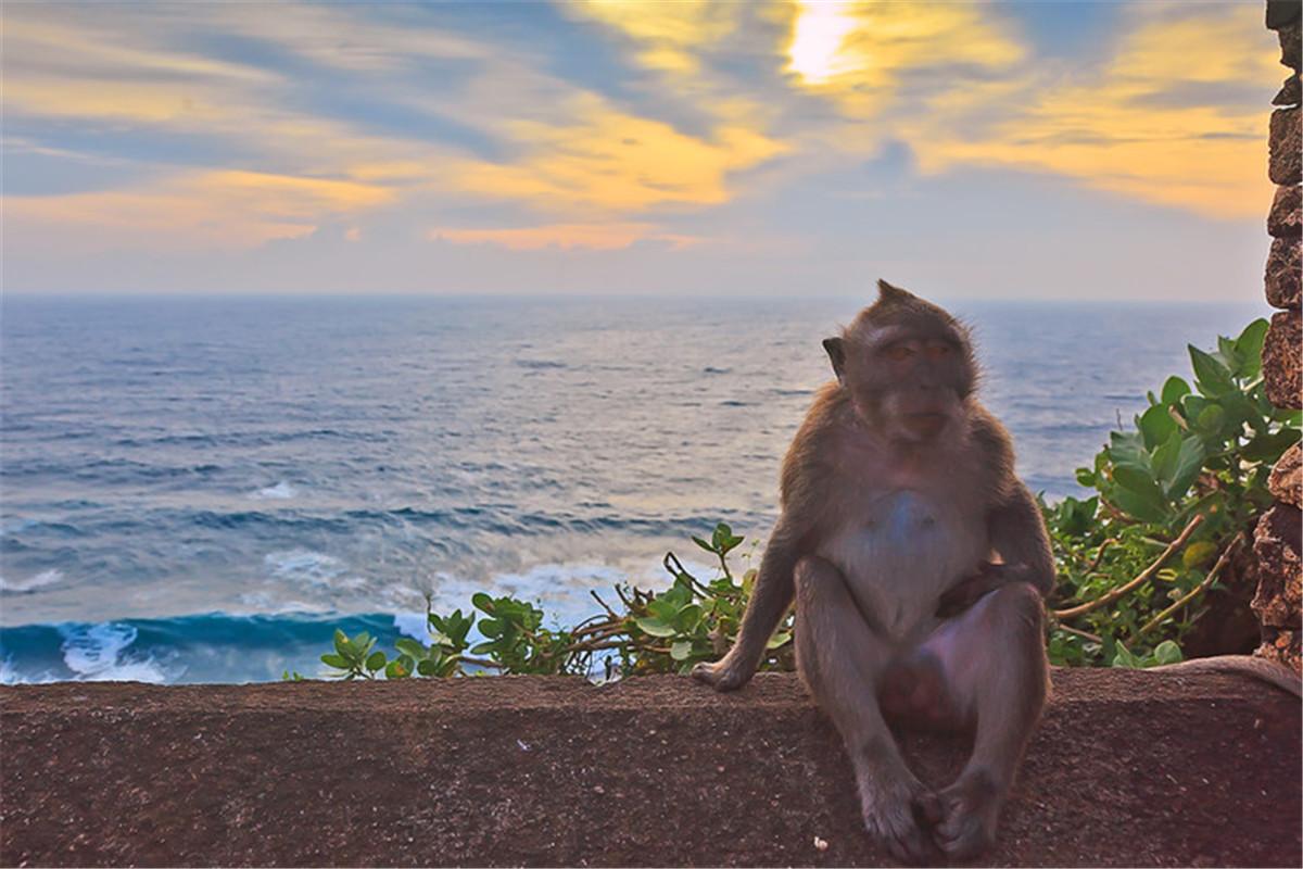 享用完了午餐就來(lái)到了情人崖,(想罵街)因?yàn)槲倚沦I的太陽(yáng)鏡被那兒的猴子偷去了結(jié)果被扔到了懸崖下面,且是兩只猴子團(tuán)伙作案?。。。?!來(lái)之前也聽(tīng)說(shuō)過(guò) 巴厘島 的猴子是出了名的壞,經(jīng)常偷東西,所以在行程里面就把猴島拋棄了,結(jié)果在這里真的是怕什么來(lái)什么,還是被猴子把太陽(yáng)鏡偷走了!當(dāng)時(shí)我是在懸崖邊上的墻角照相,先生給我照相的時(shí)候突然聽(tīng)到朋友的提醒----當(dāng)時(shí)我的眼鏡正戴在我的臉上,,,,就這么被從懸崖上來(lái)的猴子拿走了,就在不到半米的地方開(kāi)始啃,,,真的不敢去伸手啊,聽(tīng)說(shuō)有的人去拿被咬了。。。我就這么看著牙癢癢,,,先生還在那兒邊錄像邊笑!