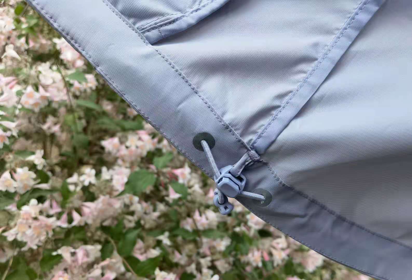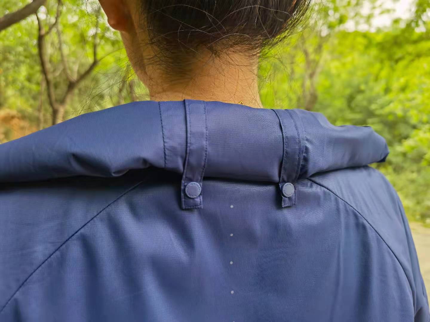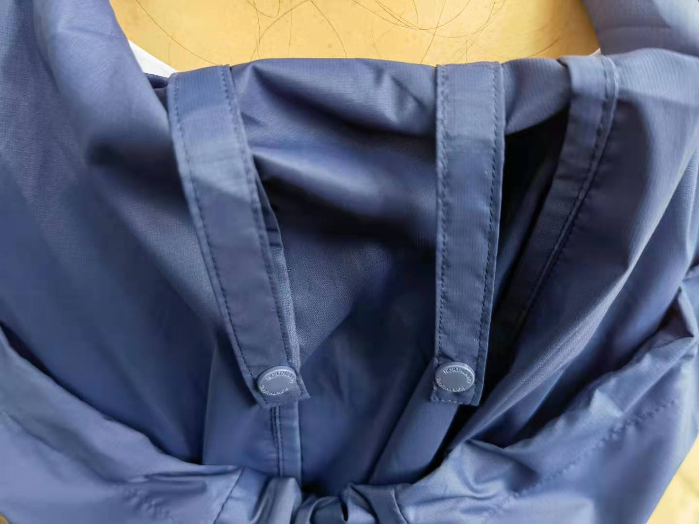 在皮膚風(fēng)衣領(lǐng)子的位置暗藏玄機(jī),設(shè)有兩根扁繩,開(kāi)始還以為是用來(lái)懸掛晾曬的,翻過(guò)帽子看背面才發(fā)現(xiàn)原來(lái)是用來(lái)收納的,原諒小編的智商不在線。。。這種巧妙的設(shè)計(jì)很新穎,大家千萬(wàn)不要遺漏這個(gè)玄機(jī)哈。