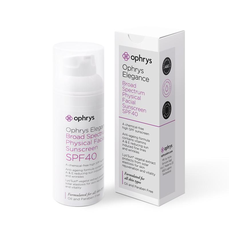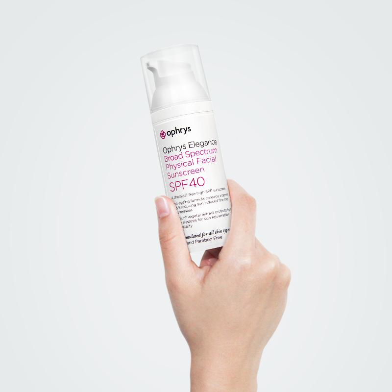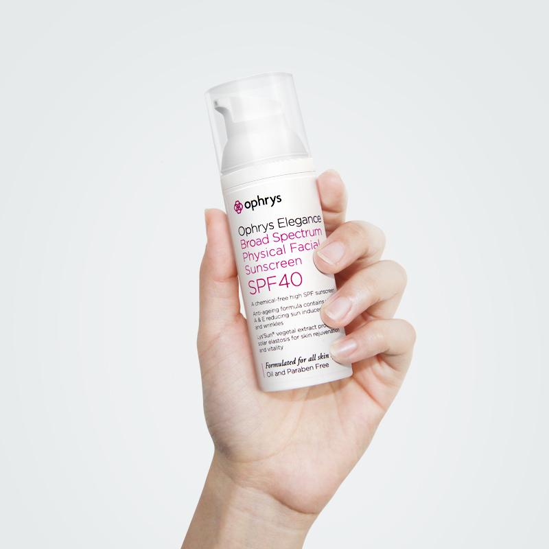 Ophry抗皺防曬霜(broad spectrum physical facial sunscreen)是一款防曬抗皺雙重功的物理防曬產(chǎn)品,SPF值為40,足以應付日常防曬需要。