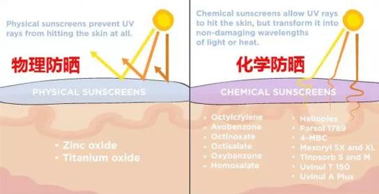 通常來說,防曬霜分為物理防曬和化學防曬兩大類別,它們根本的區(qū)別主要就體現(xiàn)在成分上。