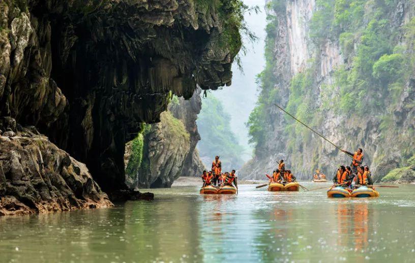 洪渡河漂流特色:懸崖峭壁、漁家小舟
