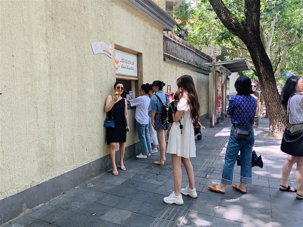 中午12點(diǎn),室外溫度37度,即使武康路上梧桐茂盛,沒風(fēng)時,熱氣還是會從四面八方襲來,走一會兒身上就悶得都是汗,可小楊覺得這天氣“巴適”,很適合外出和拍照,她做好了“黑一個度”的準(zhǔn)備,要在上海好好玩。