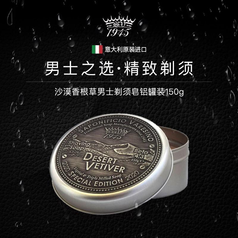SV1945沙漠香根草男士鋁罐裝剃須皂散發(fā)出香根草的香味,其配方中添加了沙棗樹油成分,以打造保濕和緊致功。