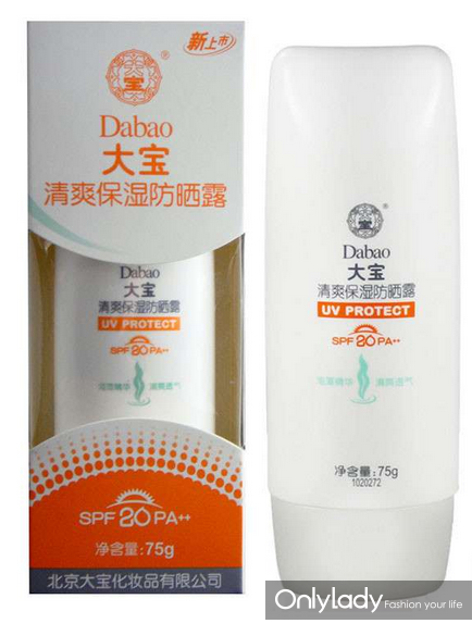 這款大寶清爽保濕防曬露SPF20PA++,規(guī)格是75G,價(jià)格是25RMB。對(duì)比普通的30ML的重量,已經(jīng)是很物美價(jià)廉的啦。這款大寶防曬霜的SPF指數(shù)是20倍,也就是說(shuō)能夠維持的防曬時(shí)間是:20*15=300分鐘。同時(shí)PA++的數(shù)字可以有的抵御紫外線UVA、UVB的傷害,減少肌膚因?yàn)槿展夂妥贤饩€引起的曬傷和曬黑的現(xiàn)象;作為大寶品牌的一族,當(dāng)然是需要添加SOD(超氧化物歧化酶),防曬的同時(shí)有的抗衰老。另外,大寶防曬霜添加有海藻的明星保濕成分,能夠令肌膚持續(xù)的水潤(rùn)一整天。