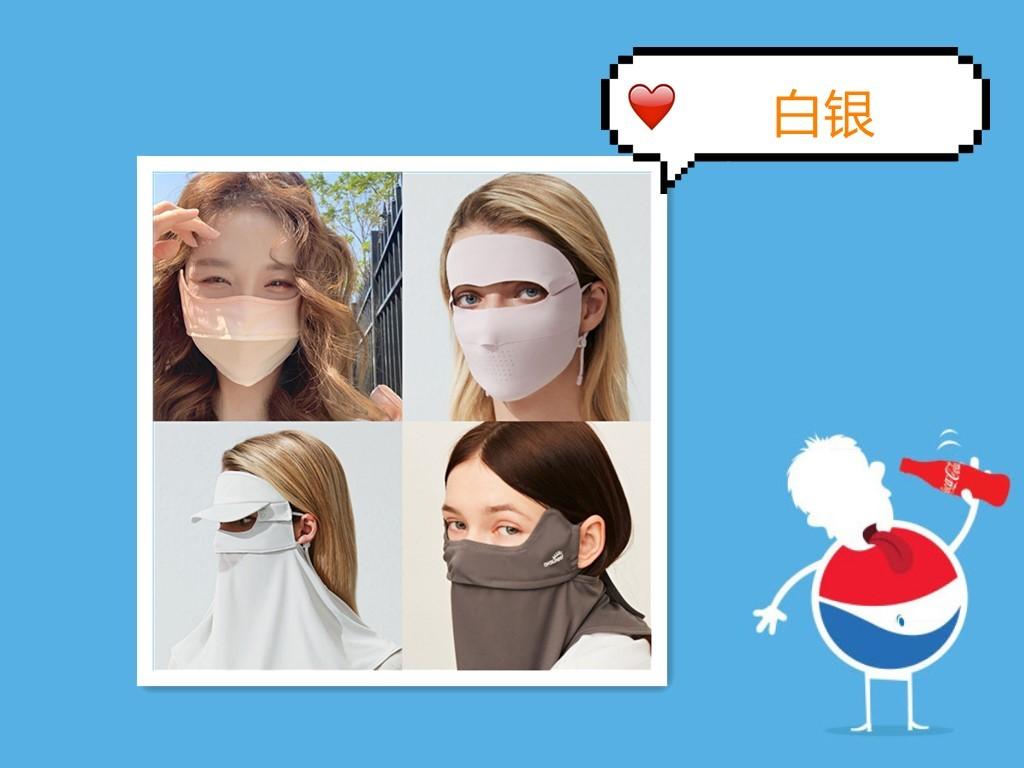 不僅要修飾臉型,還要照顧到眼角和頸部,一些還推出了腮紅口罩,戴著很顯氣色,防曬面罩則照顧到了額頭防曬,帶帽沿的基本就可以把墨鏡棄了。