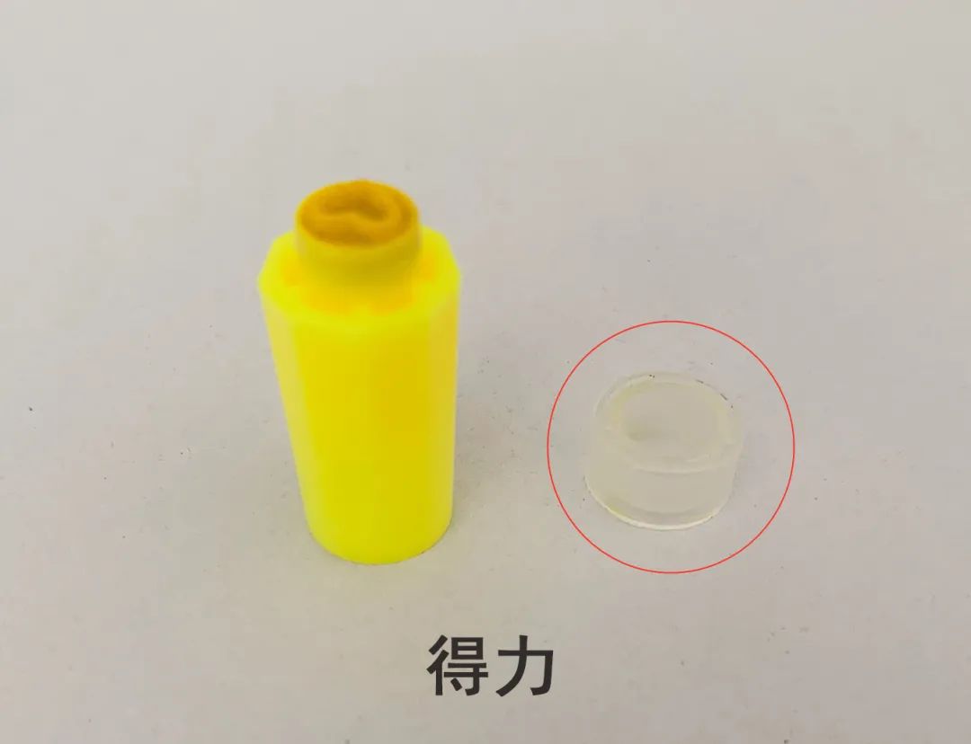 3、得力水彩筆配有一個印章,印章的“帽子”較小,可能存在意外吞咽的隱患。