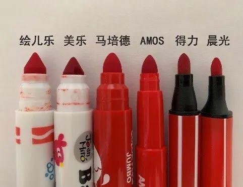 2、AMOS、繪兒樂、美樂、馬培德,水彩筆的筆帽足夠大,基本上寶寶無法吞咽下去,更加。而晨光、得力的筆帽尺寸相對略小了一點。