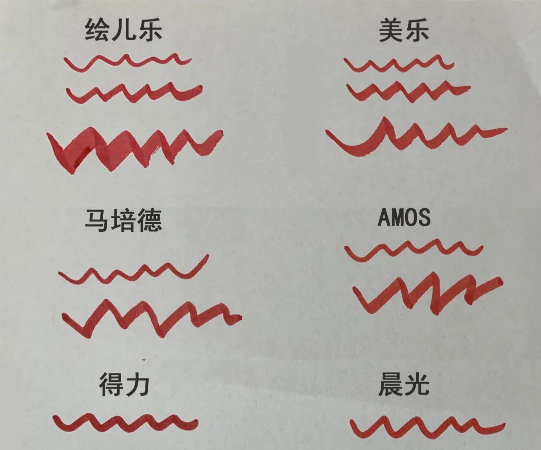 ③書寫性能:考查書寫/涂色是否流暢、速干性表現(xiàn)如何、筆觸的樣式等。