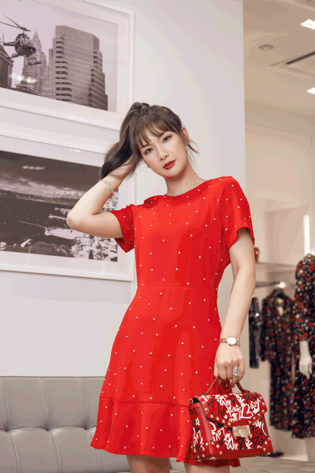 紅色涂鴉款手提包一看就是熱銷(xiāo)款,獨(dú)特又亮眼,和紅裙子一起出街真的是想象中?;ń憬愕拇虬缋?。
