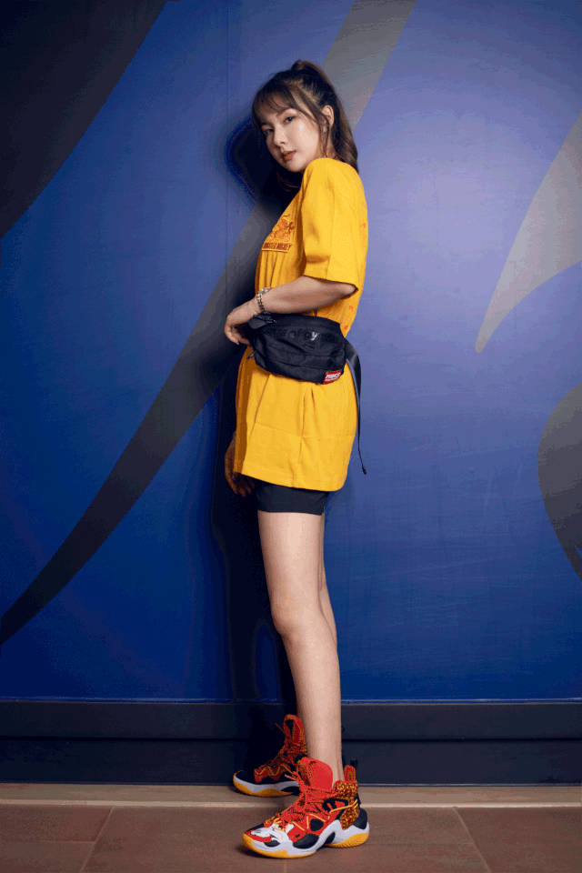 大T恤下衣失蹤法是不會(huì)過(guò)時(shí)的,覺(jué)得沒(méi)有腰線(xiàn),可以直接掛個(gè)腰包,酷酷拽拽誰(shuí)都不愛(ài)。摩登小姐姐搭配了一雙男款米奇印花籃球鞋,讓整套look更加帥氣了!