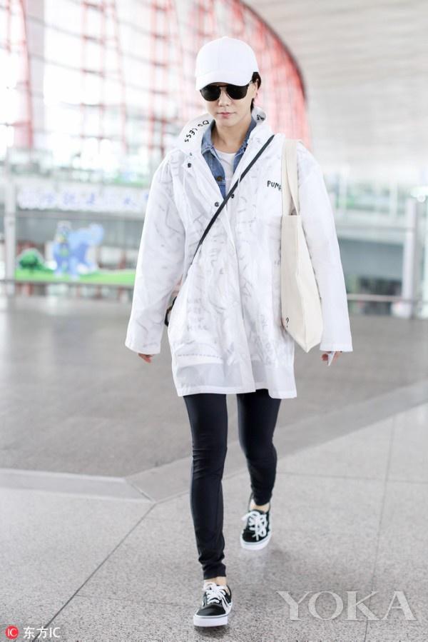 喬欣的防曬衣看起來顯得乖乖的,半透明的材質(zhì)正好為里面簡(jiǎn)單的Tee做了一絲裝飾。