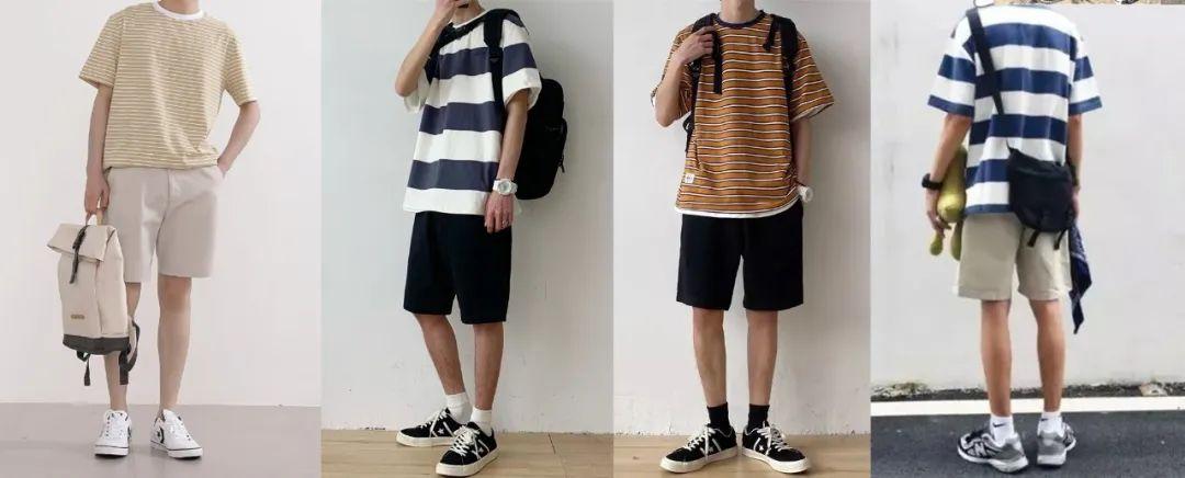 條紋T好搭配純色的褲子,反過(guò)來(lái)下身褲子有條紋或者花紋的,上衣好是純色,畢竟太花的5分褲是不適合日常休閑穿著的,更適合在海邊旅游之類的時(shí)候穿著。幾個(gè)條紋+5分褲搭配參考: