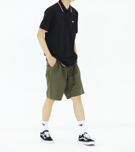 軍綠色與黑色是一組很經(jīng)典的配色,兩種顏色碰撞顯得硬朗有型之外也沒(méi)那么挑人,比如軍綠色(或迷彩)的短褲搭配黑色的polo衫就很沒(méi)有違和感↓