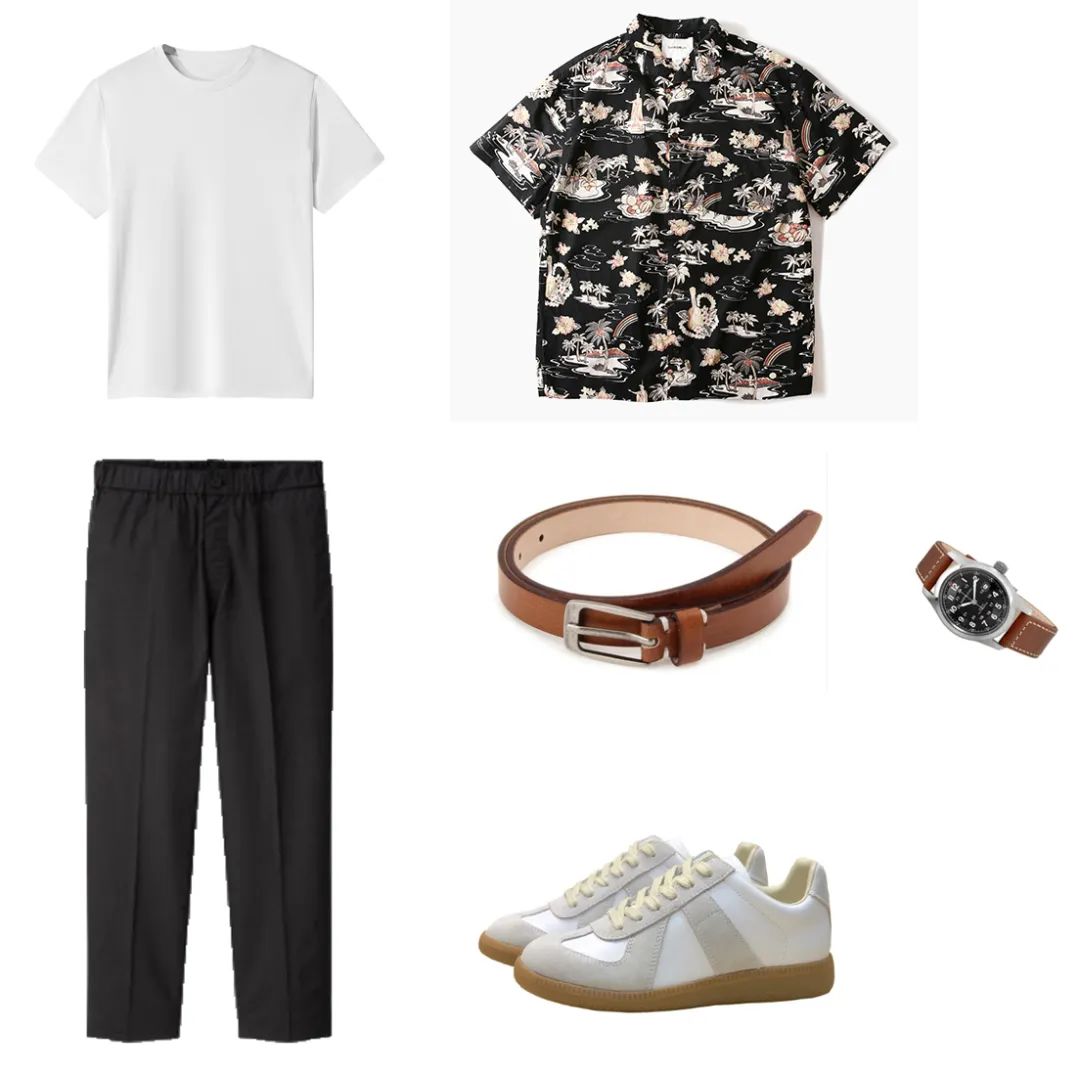 穿著滿版印花的襯衫時(shí)利用純色去中和過(guò)渡或者壓制平衡視覺(jué)上的唐突感,再放幾套夏威夷襯衫搭配給大家seesee做參考↓