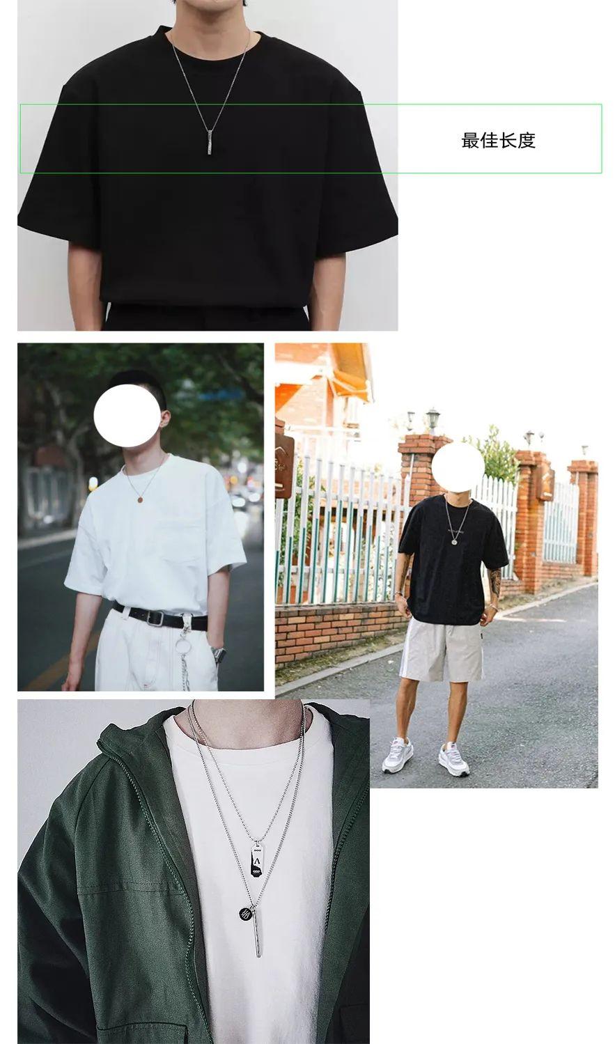 項(xiàng)鏈的長(zhǎng)度不要過(guò)長(zhǎng),好是到胸部位置,太長(zhǎng)了就很容易顯得用力過(guò)度不好駕馭,太短了顯得你真的好短哦(此處有火車經(jīng)過(guò)),當(dāng)然很喜歡帶項(xiàng)鏈的一長(zhǎng)一短互搭也沒(méi)問(wèn)題視覺(jué)上顯得更有層次感↓