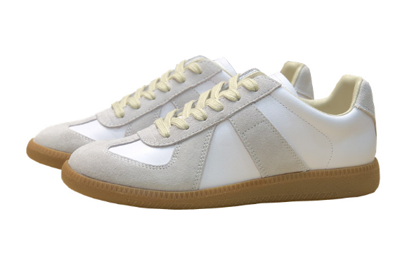 夏季可以選擇低幫的休閑板鞋,比如經(jīng)典的德軍訓(xùn)練鞋,德訓(xùn)鞋不同于小白鞋,鞋身的反絨面與生膠底看上去很有辨識(shí)度,能同時(shí)給人簡(jiǎn)約與復(fù)古感,整體質(zhì)感也很不錯(cuò)。這鞋子近兩年很火,先是有幾個(gè)輕奢品牌帶頭,之后各大品牌都有推出德軍訓(xùn)練鞋,價(jià)格下到一兩百、上到幾千都有,款式參考一下自行挑選↓