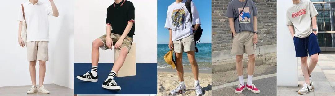 3.白色T恤+襯衫+短褲+小白鞋,白鞋上下呼應(yīng),襯衫低飽和度的顏色看上去舒服順眼,此處襯衫可以替換成其他顏色比如淺卡其、淺灰、騷粉、青綠等等淺色系自行發(fā)揮