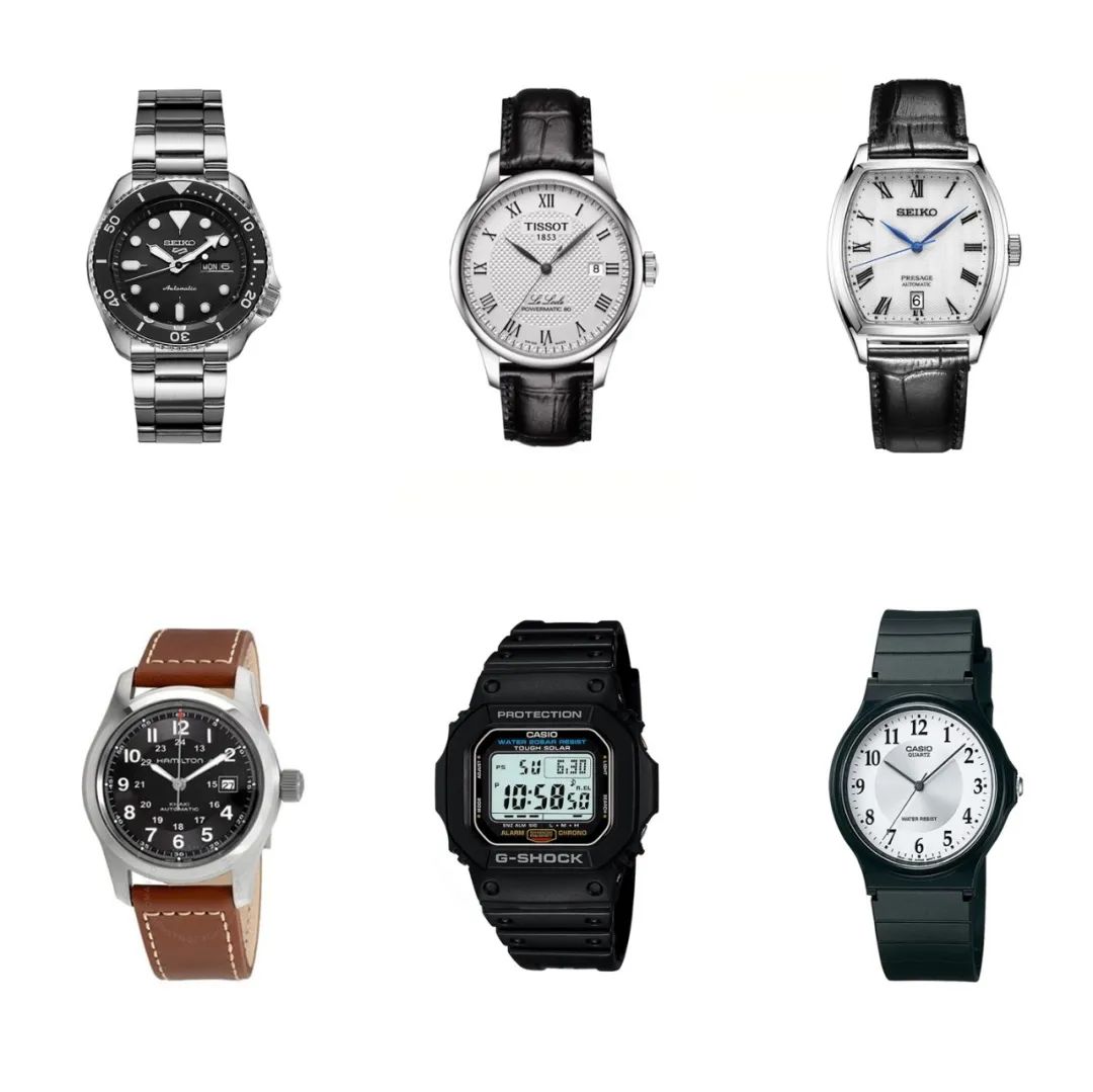 手表常見(jiàn)的有精工、天梭、力洛克系列、榮漢斯、卡西歐、美度、西鐵城、雪鐵納、漢密爾頓、萬(wàn)國(guó)、勞力士等品牌,這個(gè)需要根據(jù)自身需求去選擇,這里不談功能,以經(jīng)典不易過(guò)時(shí)、款式簡(jiǎn)單易搭配為需求,放幾個(gè)款式給大家參考: