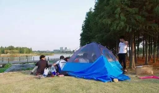 這里有許多大草坪,是蘇州大的野外露營地,能同時接納上千號人,扎營后可 以燒烤、垂釣、K歌。