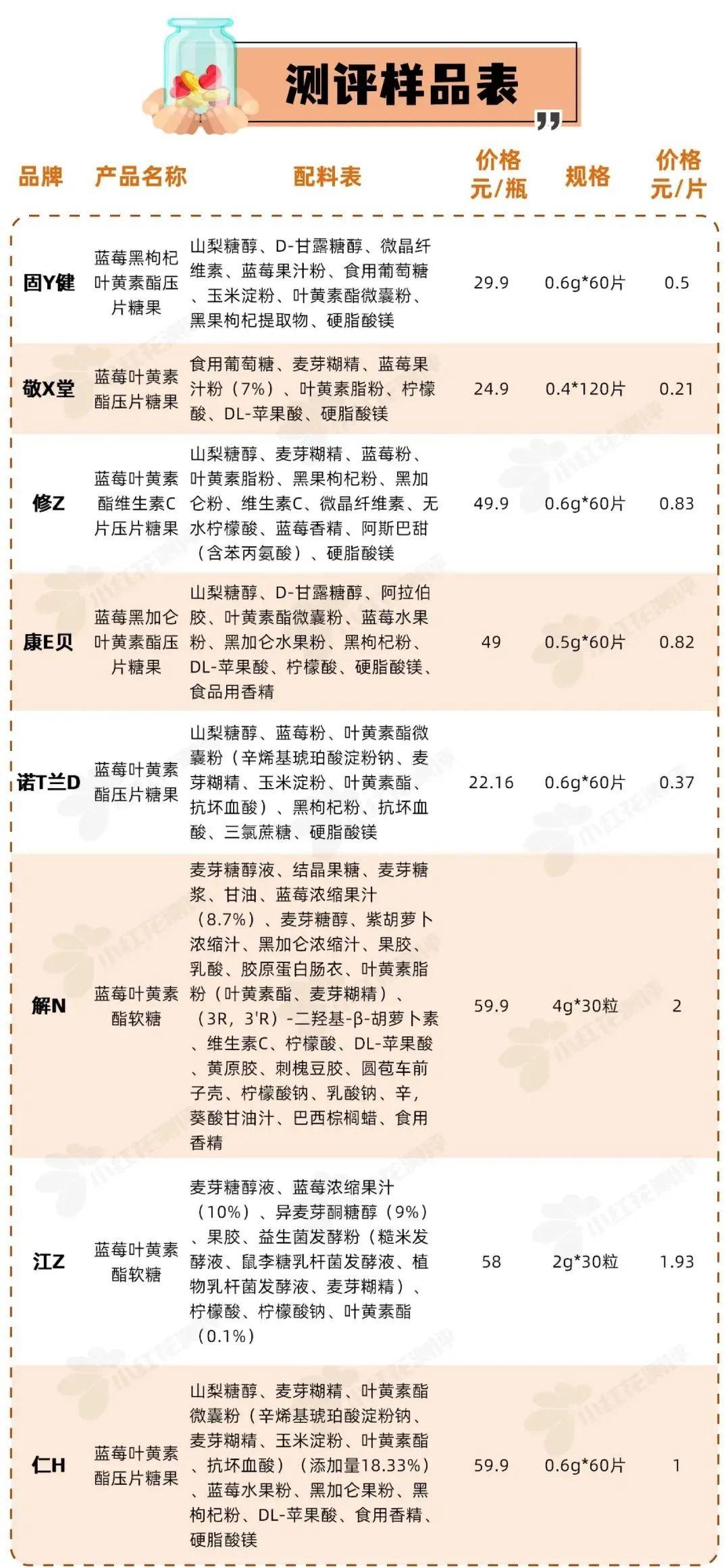 測評樣品市面上的葉黃素補充劑主要分為游離葉黃素、葉黃素酯兩種,其中葉黃素酯的穩(wěn)定性比游離葉黃素更強,且價格也更低。