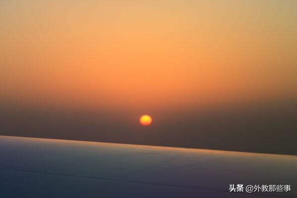 回程,趕上飛機降落前臨近黃昏,看機艙外夕陽西下,一時興起,留下迪拜上空的夕陽!