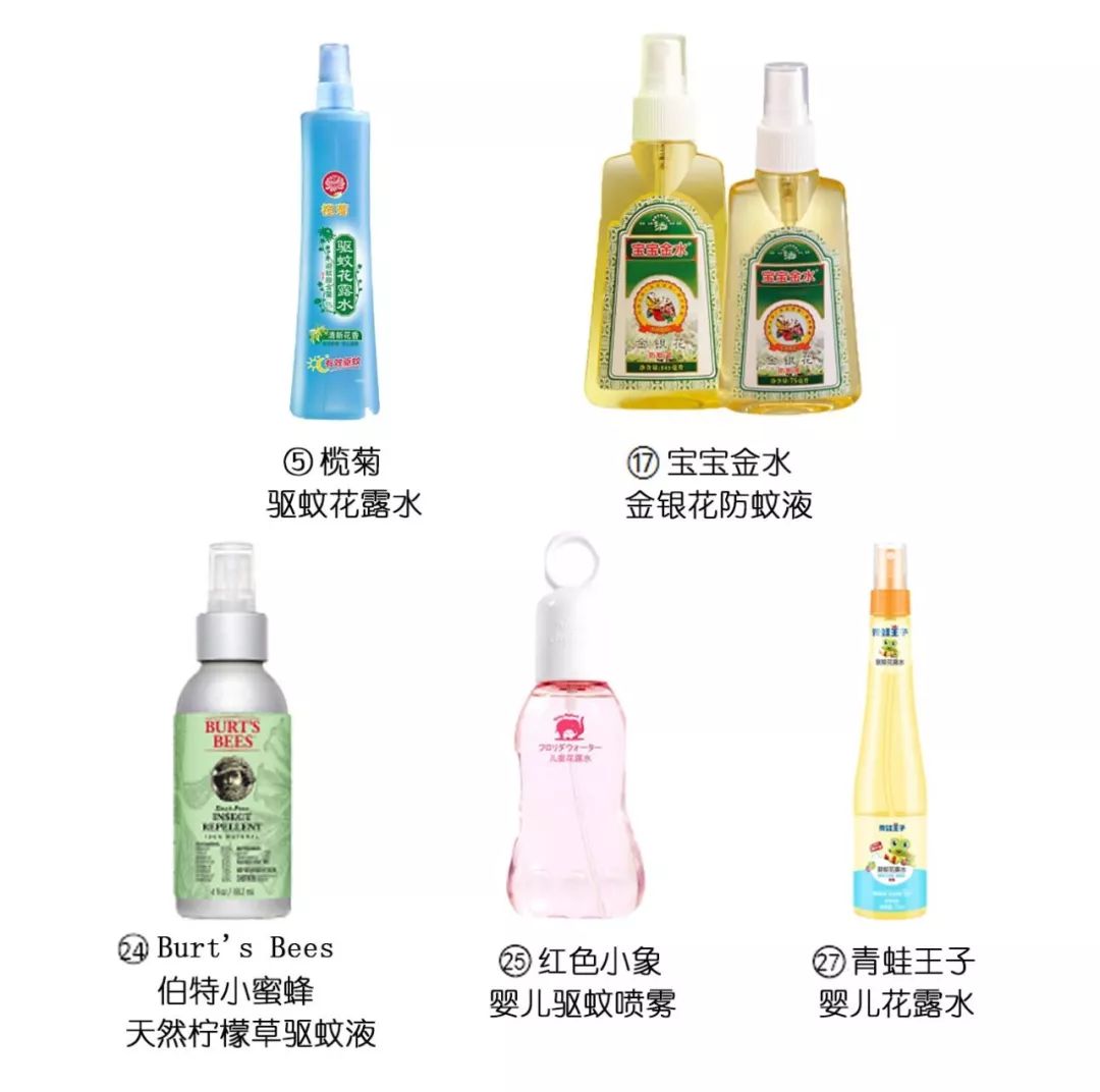 比如欖菊花露水、寶寶金水金銀花防蚊液、小蜜蜂寶寶驅(qū)蚊噴霧、紅色小象嬰兒驅(qū)蚊噴霧、青蛙王子嬰兒花露水等等。